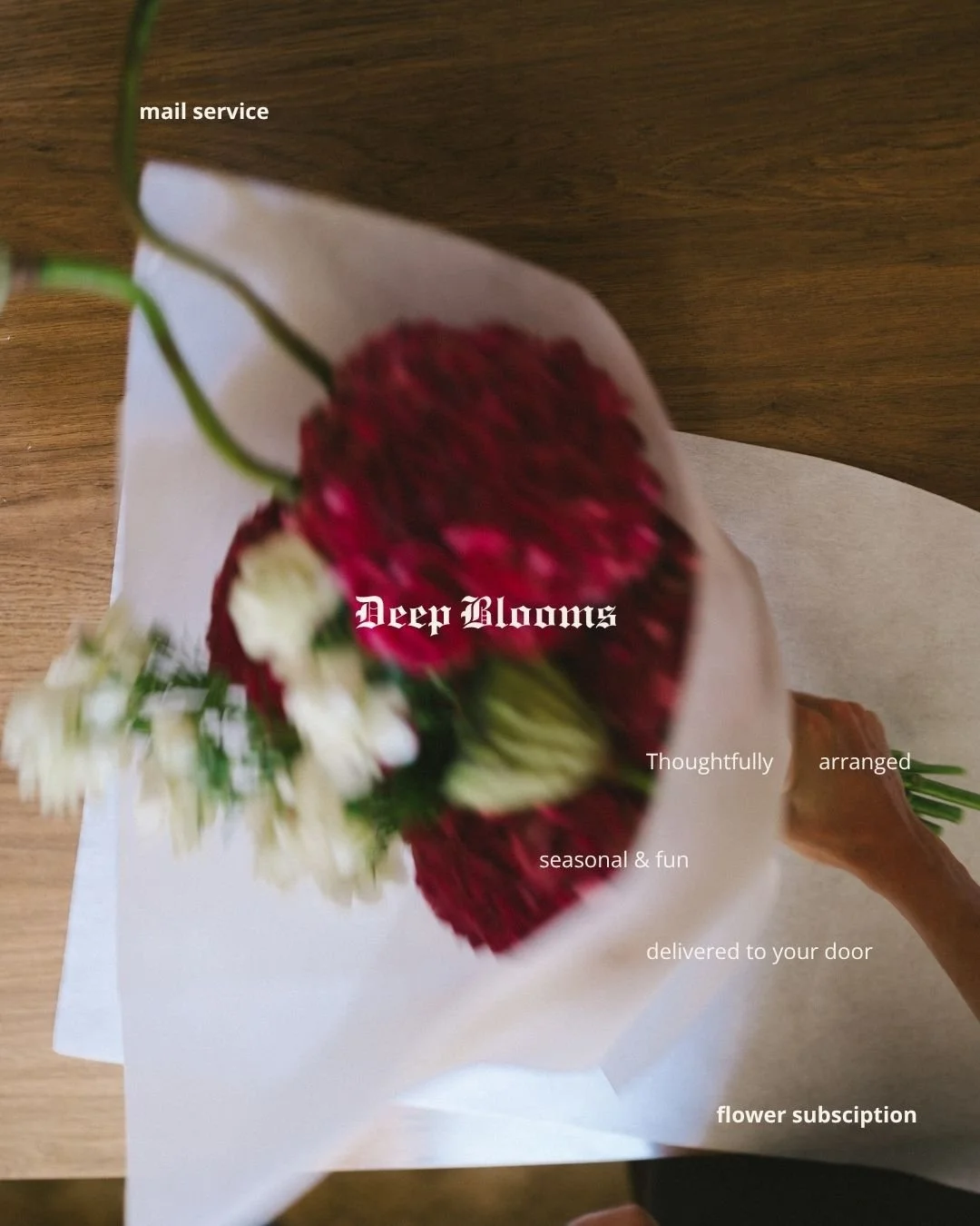 Deep Blooms Mail Service is a flower subscription and delivery service for the Fremantle and Perth area. Seasonal, sculptural arrangements delivered on a weekly or monthly basis.